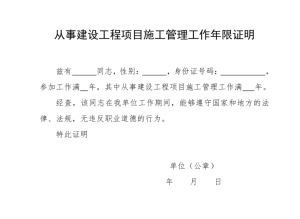 3)建造师工作经验证明应当有被证明人的工作经验年限;