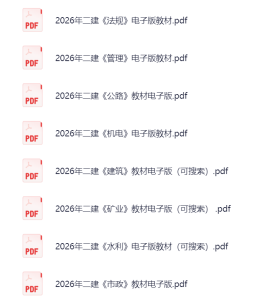 2026年二建教材电子版 26二建电子版PDF教材可搜索 下载地址: 链接:https://pan.quark.cn/s/c0557c4eb41e 声明:本站文章,均源于各类互联网媒体平台。如若本站内容侵犯了您的合法权益,请联系我们,我们将及时删除侵权内容。